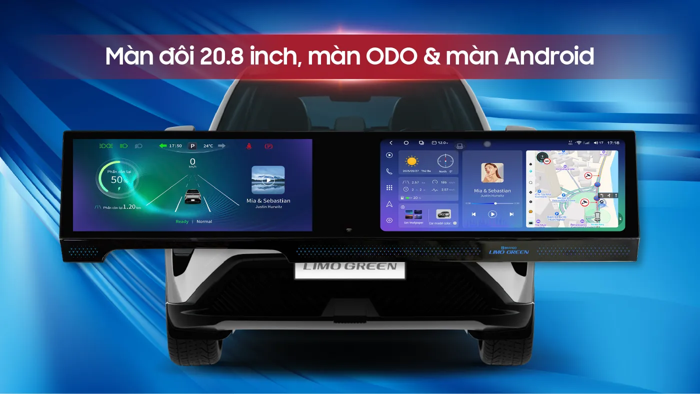 Hệ điều hành: Song song Android 13 & VinFast OS – Tương thích tối ưu với xe Limo Green.